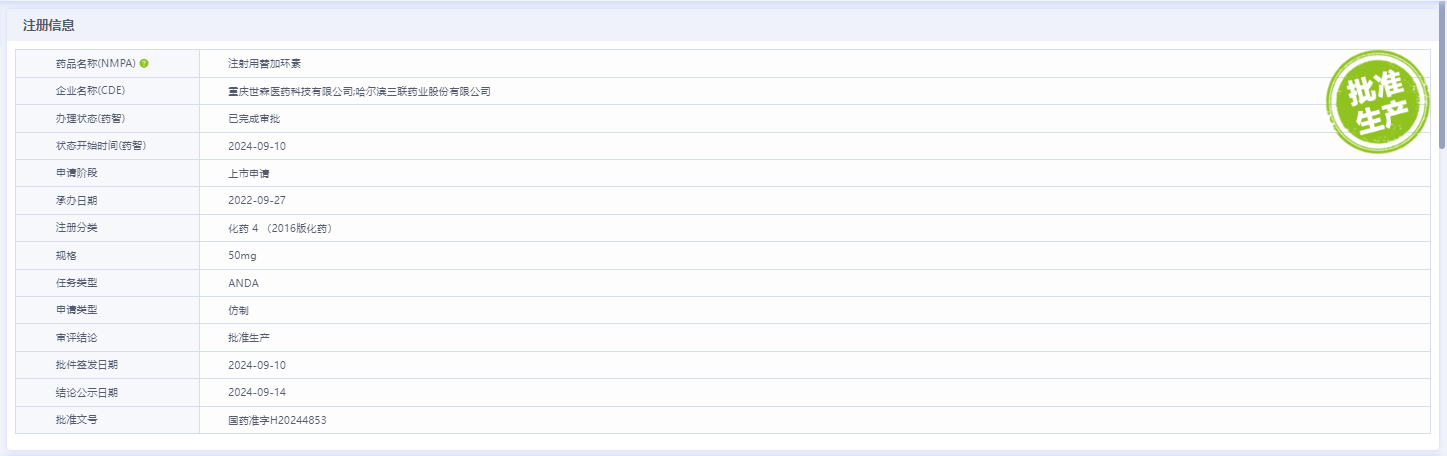 Lunarsun Pharma's Tigecycline for Injection has officially been approved for marketing.