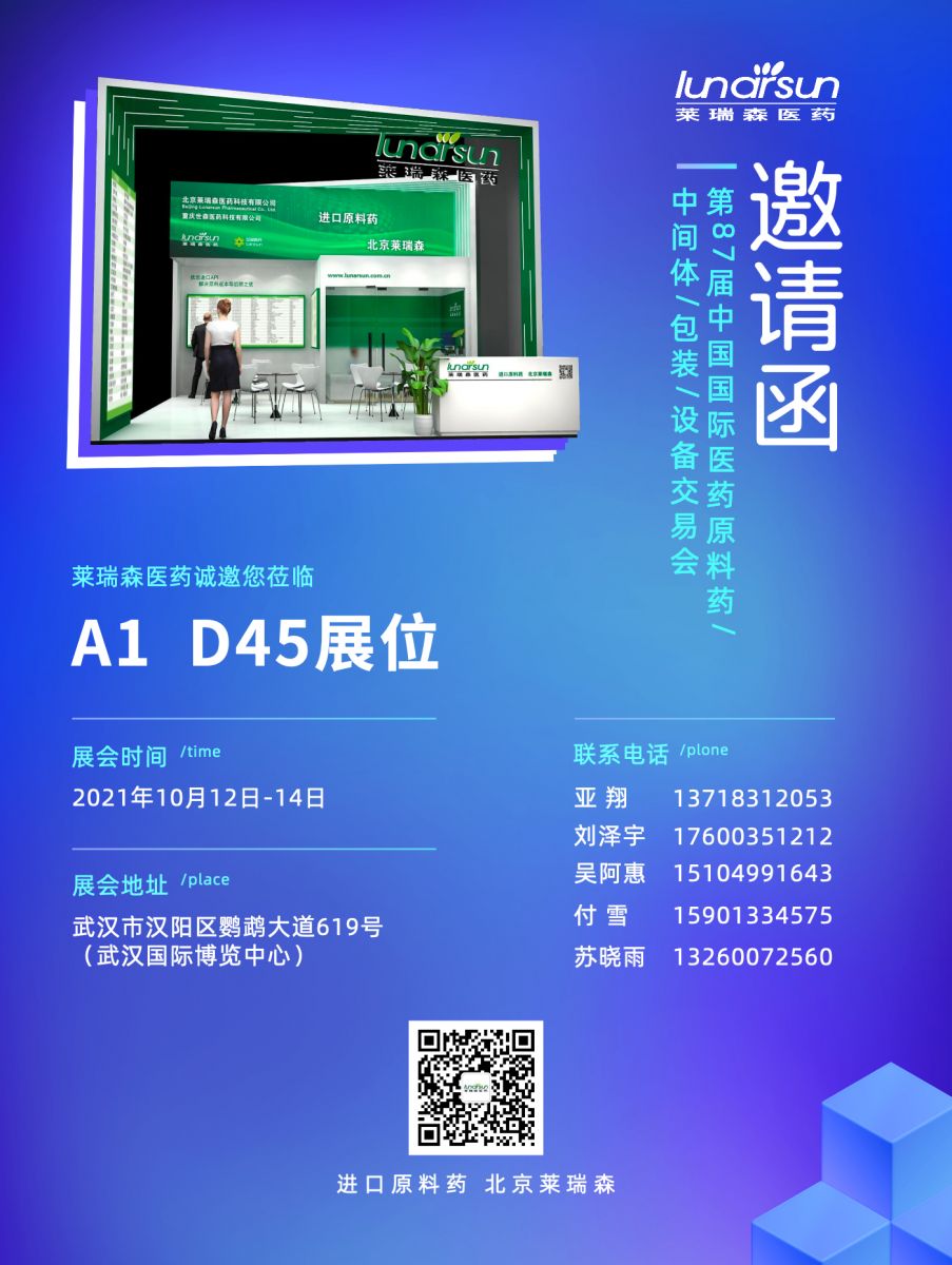 武漢API展會 時間:2021.10.12-14 地點:武漢 展位號:A1 D45 歡迎新老客戶參觀洽談!