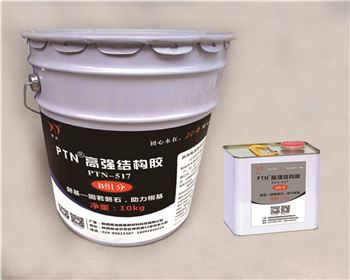 PTN-517為A、B雙組分,A組分呈透明淺黃色,B組分呈白色,A、B組分材料按1:5的質量比混合,充分攪拌涂刷至粘接基面即可。